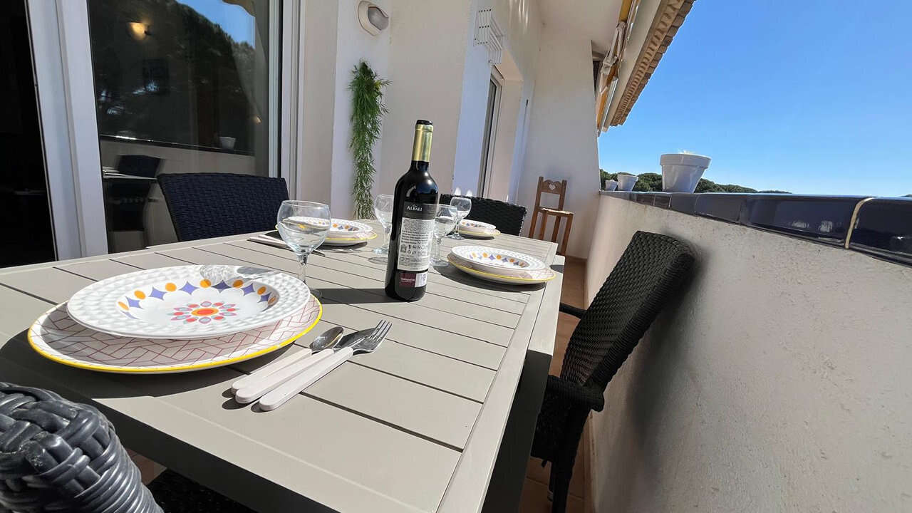 Pensée comme un véritable prolongement de l’appartement, la terrasse dispose d’un espace détente et d’un coin barbecue, idéale pour profiter pleinement du climat de la Costa Brava.
